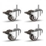 • Pack de 4 ruedas con freno. No están instaladas, se envían desmontadas.