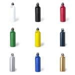 Bidón de aluminio con 800 ml de capacidad. Con tapón de seguridad a rosca y mosquetón metálico de fácil transporte. Original acabado mate y con una variada gama de colores. Presentado individualmente en una caja de diseño.