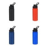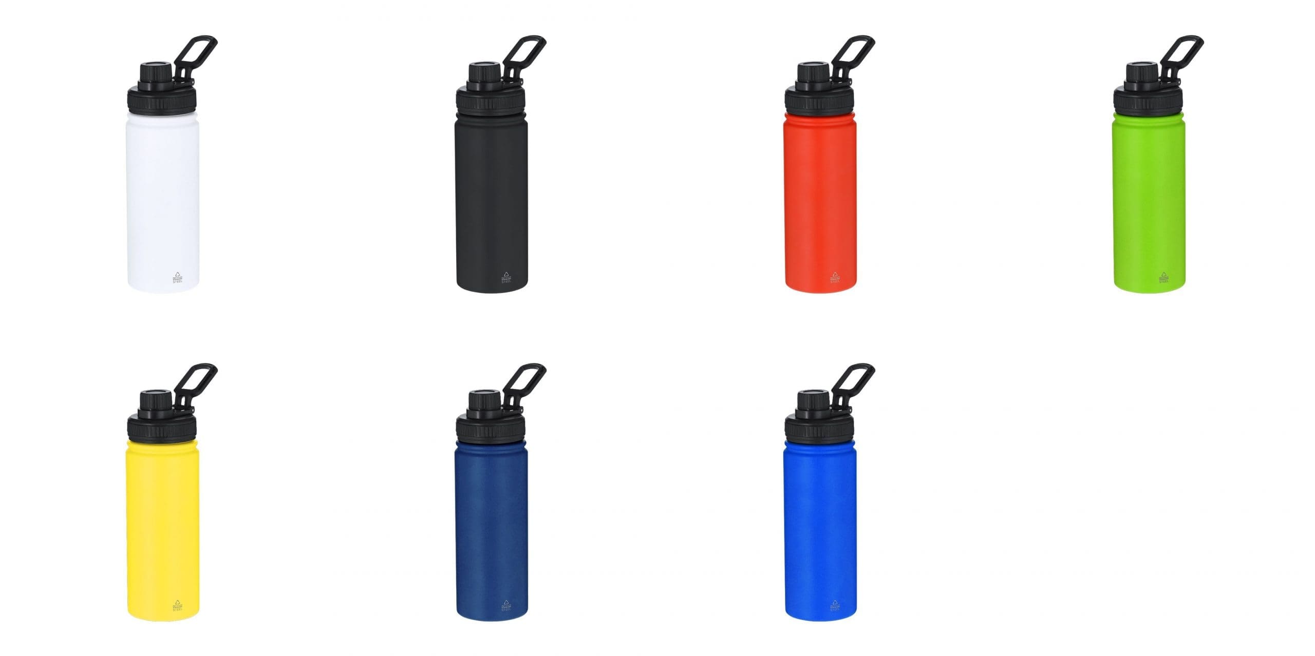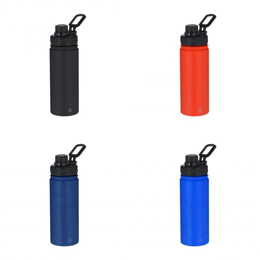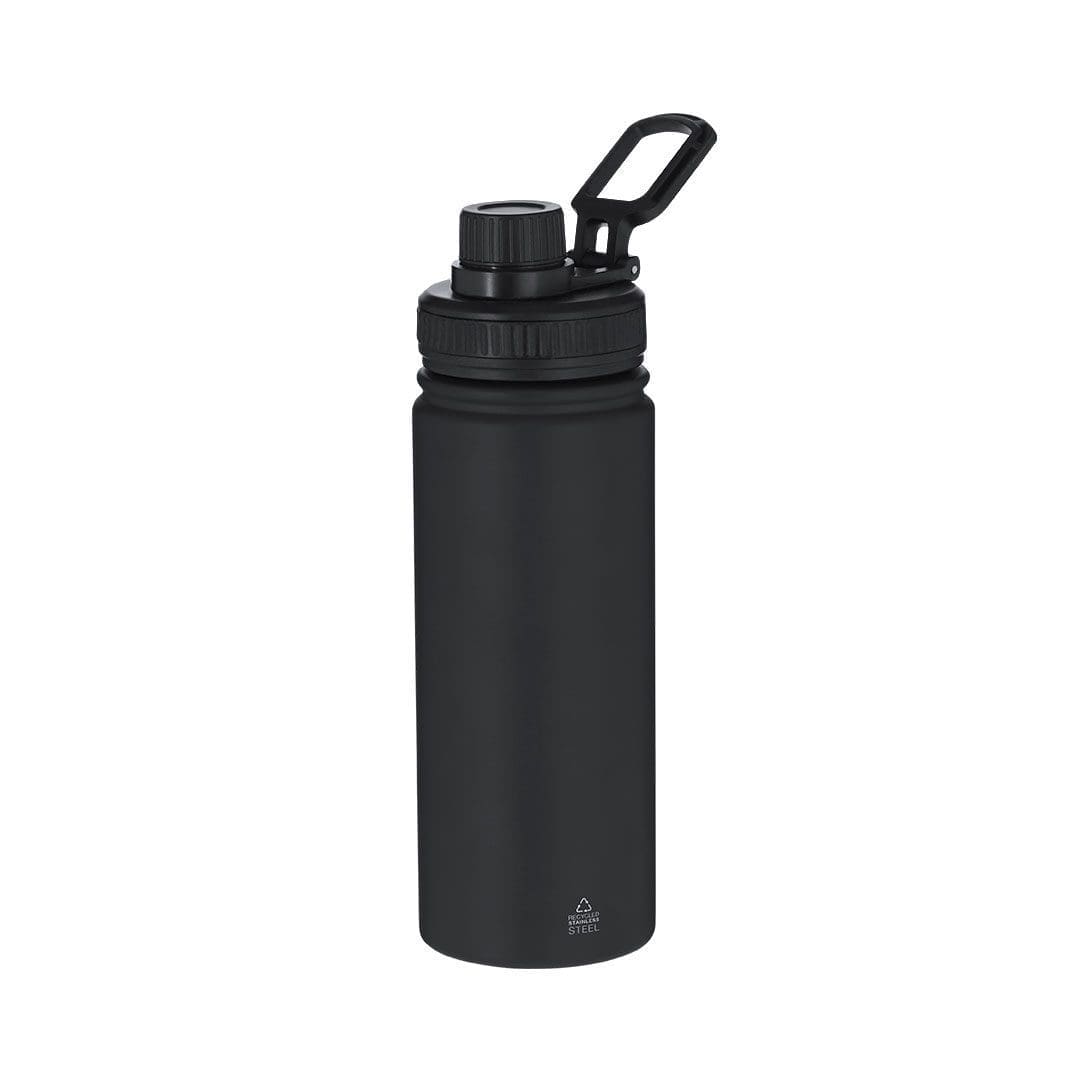 Bidón de Acero Inox Reciclado con 550 ml de capacidad. Incluye tapadera color negro con sistema de cierre a rosca, agarre de silicona para un óptimo sellado, dosificador y asa para transporte ajustable. En acabado mate especialmente diseñado para láser. Incluye distintivo Acero Inox Reciclado.
