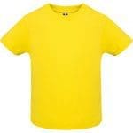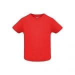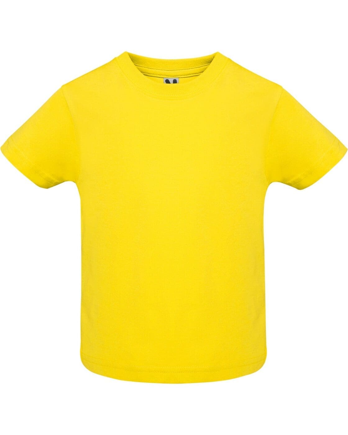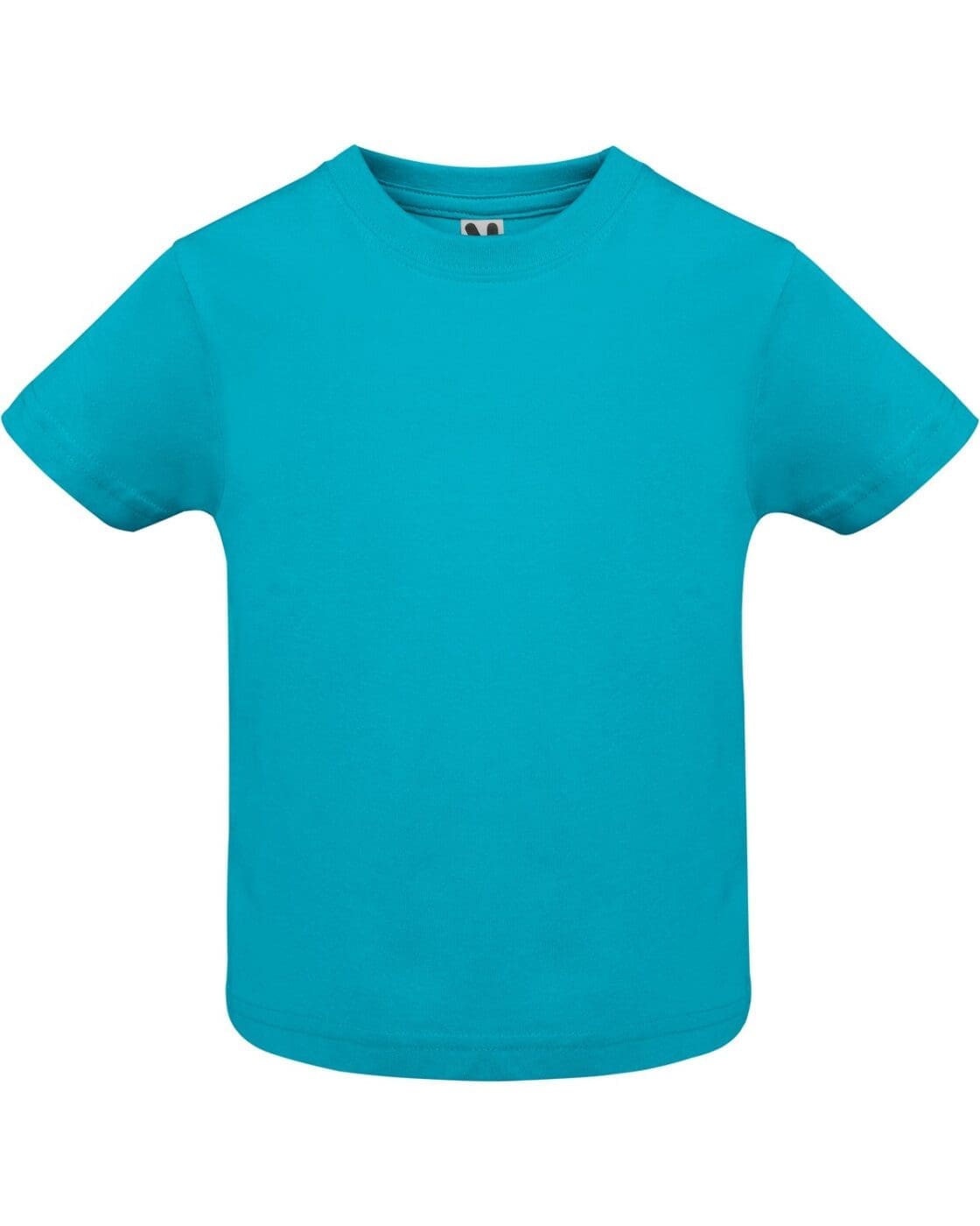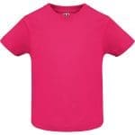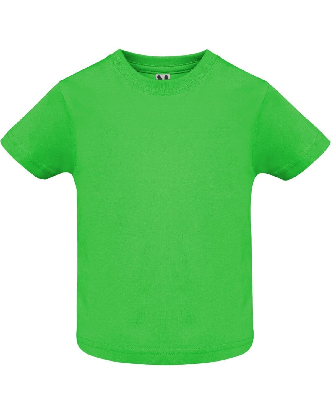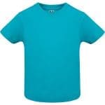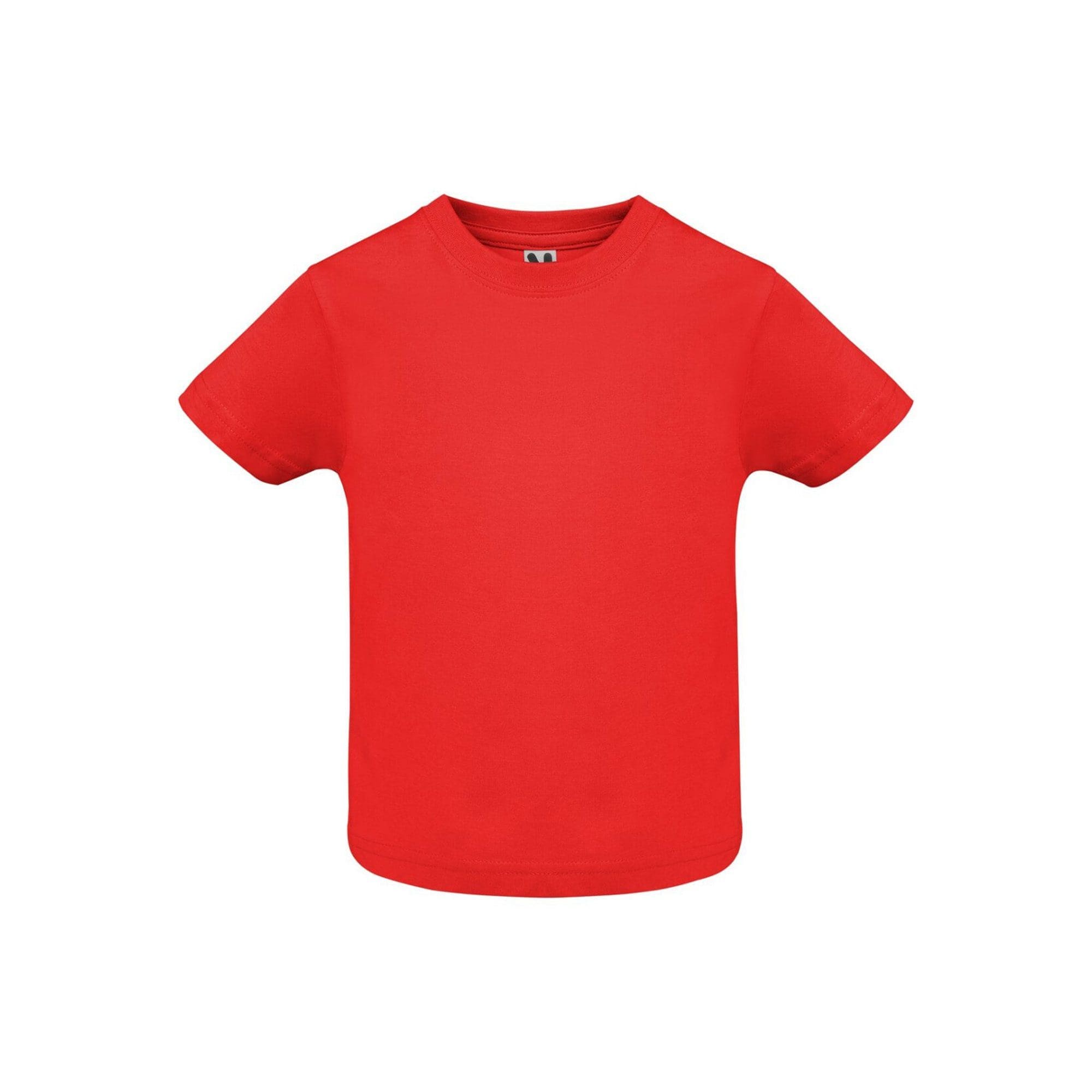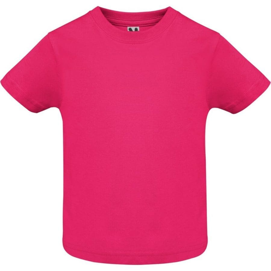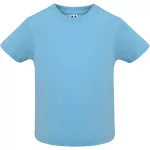 Camiseta de manga corta especial para bebé, confeccionada con tejido en galga fina y acabado compactado. Cuello redondo y abertura en el hombro con corchetes desde la talla 6m a 18m. Talla 2A sin apertura en el hombro. Costuras laterales.