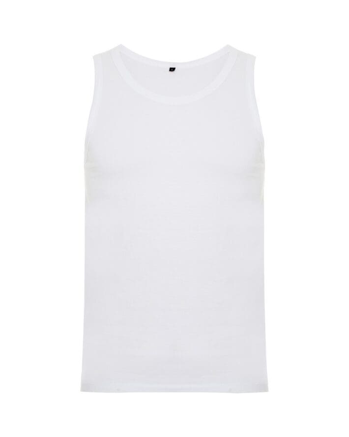 Camiseta de tirantes anchos, corte semientallado, ribeteado en punto liso en escote y sisa. Costuras laterales remalladas a 4 hilos dándole mayor durabilidad. Disponible en tallas S, M, L, XL, 2XL y 3XL