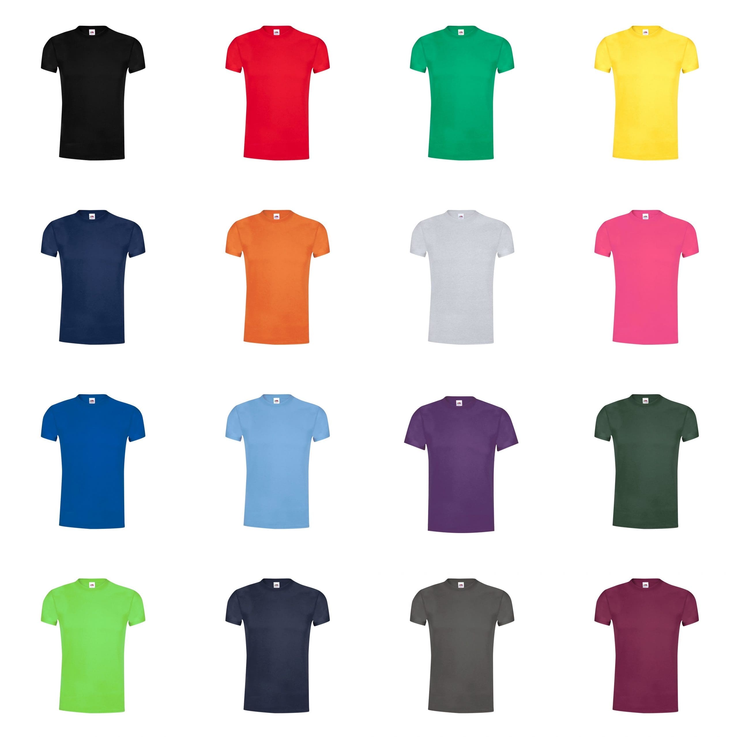 Camiseta para adulto de colores. Fabricada en material 100% algodón de 145g/m2. De tacto suave, con cuello redondo ribeteado y tapeta a juego. Con malla más cerrada para optimizar la calidad de impresión y disponible en completísima gama de colores. Tallas S, M, L, XL, XXL.
