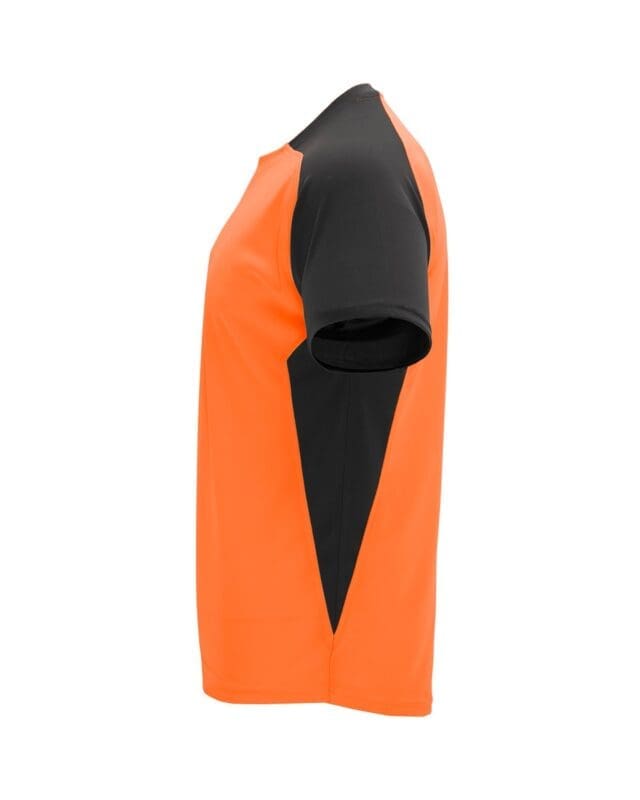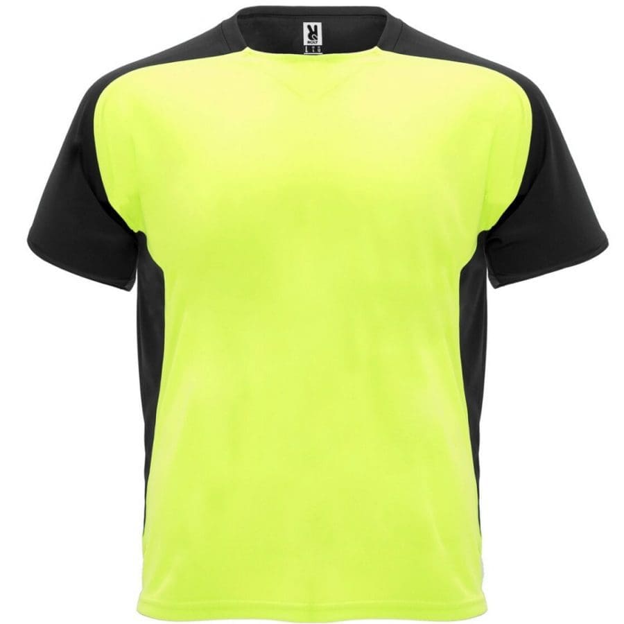 Camiseta técnica de manga corta ranglán. 1. Cuello redondo con cubrecosturas a tono. 2. Mangas y paneles laterales a contraste. Disponible en gama de colores de moda y en tallas S, M, L, XL, 2XL.