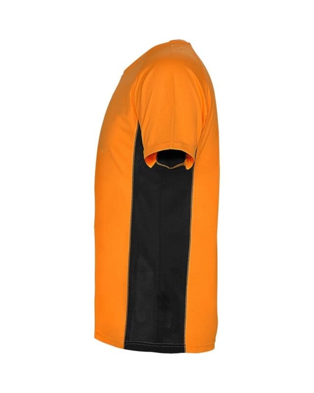 Camiseta técnica combinada con dos tejidos de poliéster, manga corta de estilo raglán. Tejido principal bird’s eye y paneles laterales e interior de la manga con tejido micro perforado. Cuello redondo con cubrecosturas de refuerzo en su interior. Camiseta de tejido confortable y fácilmente adaptable al cuerpo.
