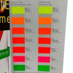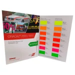 Esta carta de colores de Vinilo de rotulación Oracal 6510 y 7510 Flúor Brillo es la herramienta perfecta que debe acompañarte siempre en tus proyectos de rotulación. Muestras de color que te ayudarán a ti y a tus clientes a decidir cuál es el tono perfecto que más encaja.