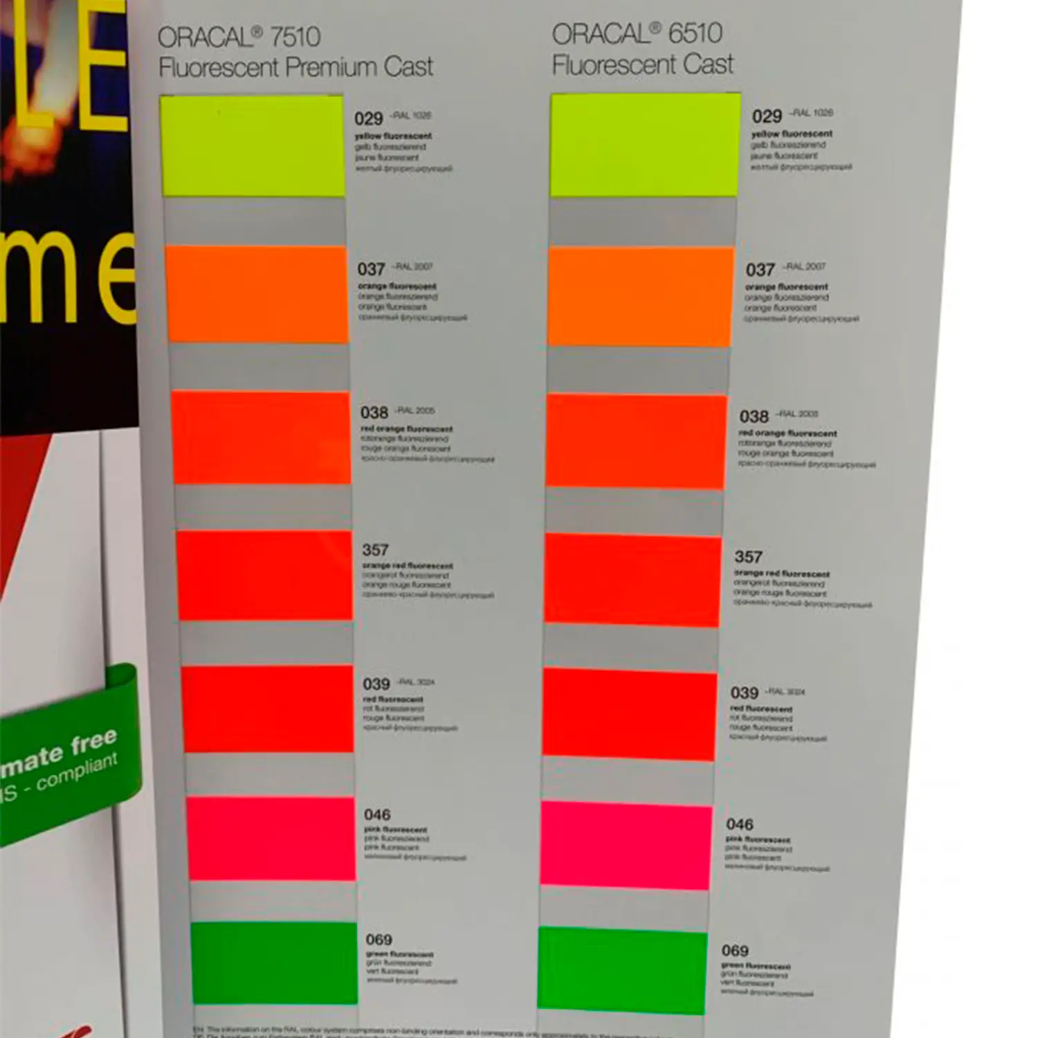 Muestras reales de Vinilo de rotulación Oracal 6510 y 7510 Flúor Brillo.
