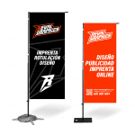 Este pack de Fly Banner Rectangular incluye la bandera con impresión personalizada y la estructura. Además puedes elegir la base que mejor se adapte a tus necesidades.