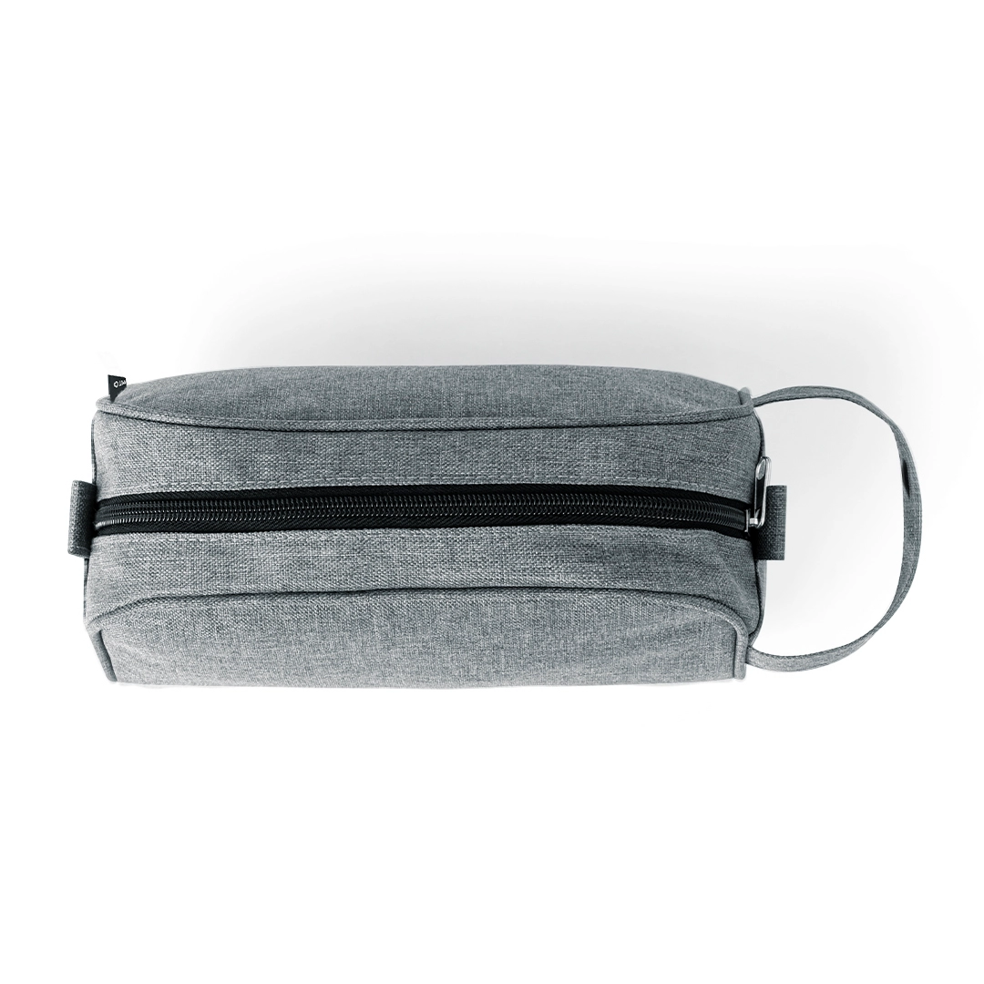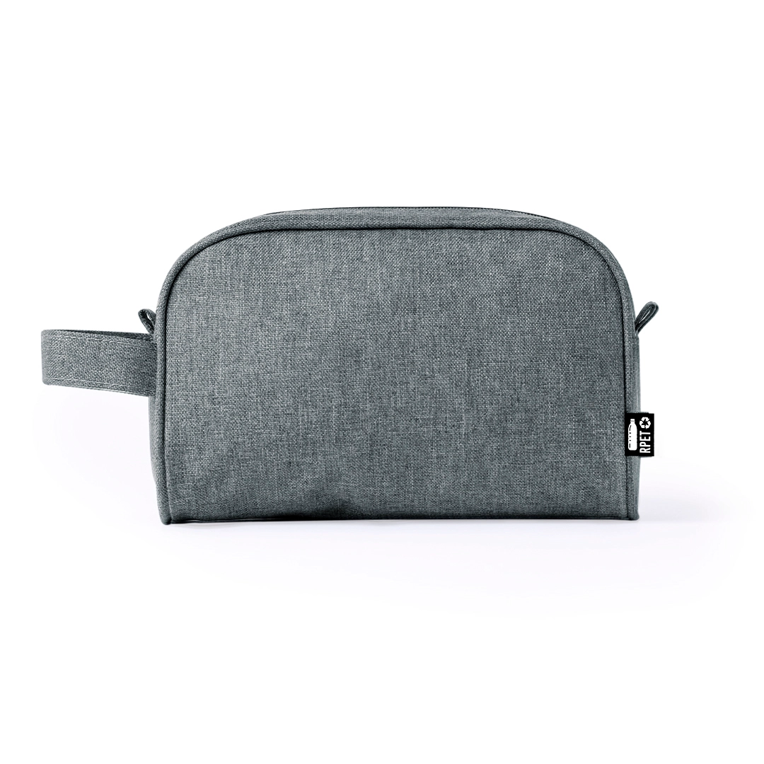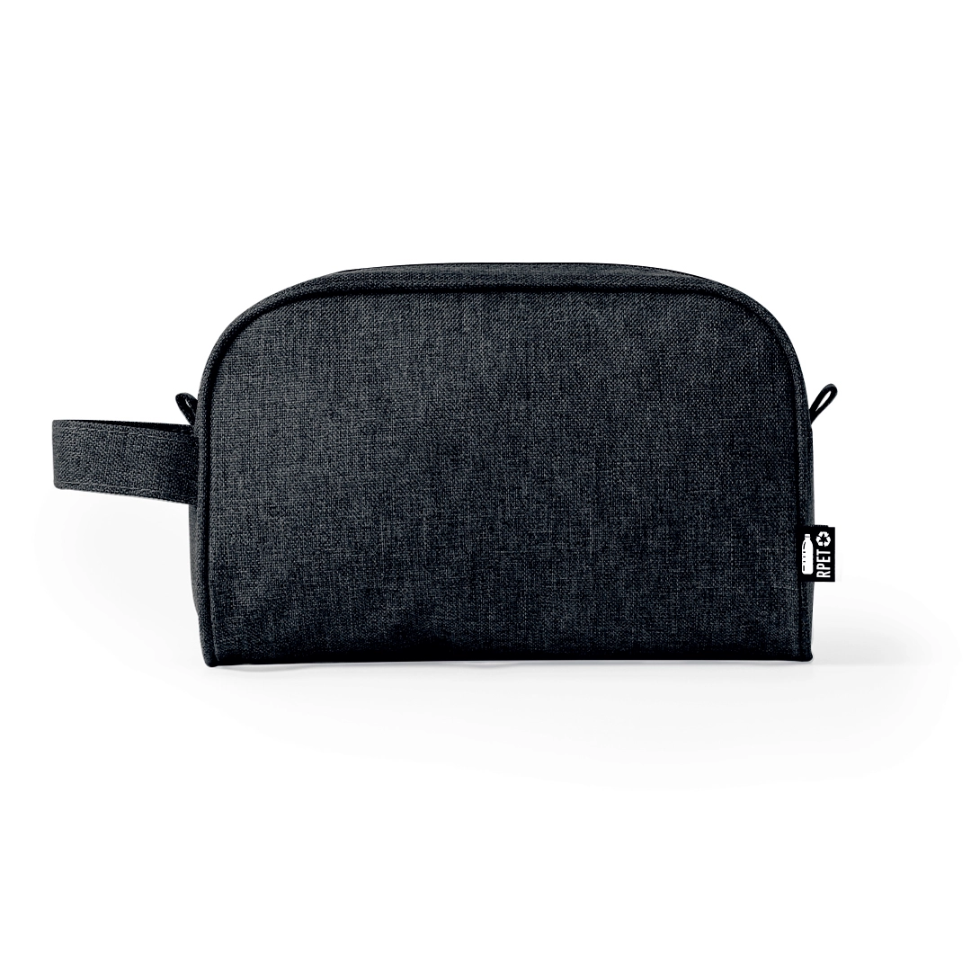Neceser multiusos en resistente 600D RPET. Con cierre de cremallera y tirador metálico. Con logotipo RPET en etiqueta exterior.