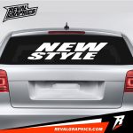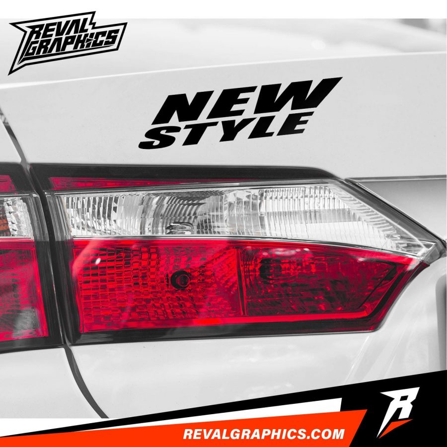 Pegatina Newstyle fabricada en vinilo adhesivo de calidad. Diseño exclusivo sólo disponible en Reval Graphics.