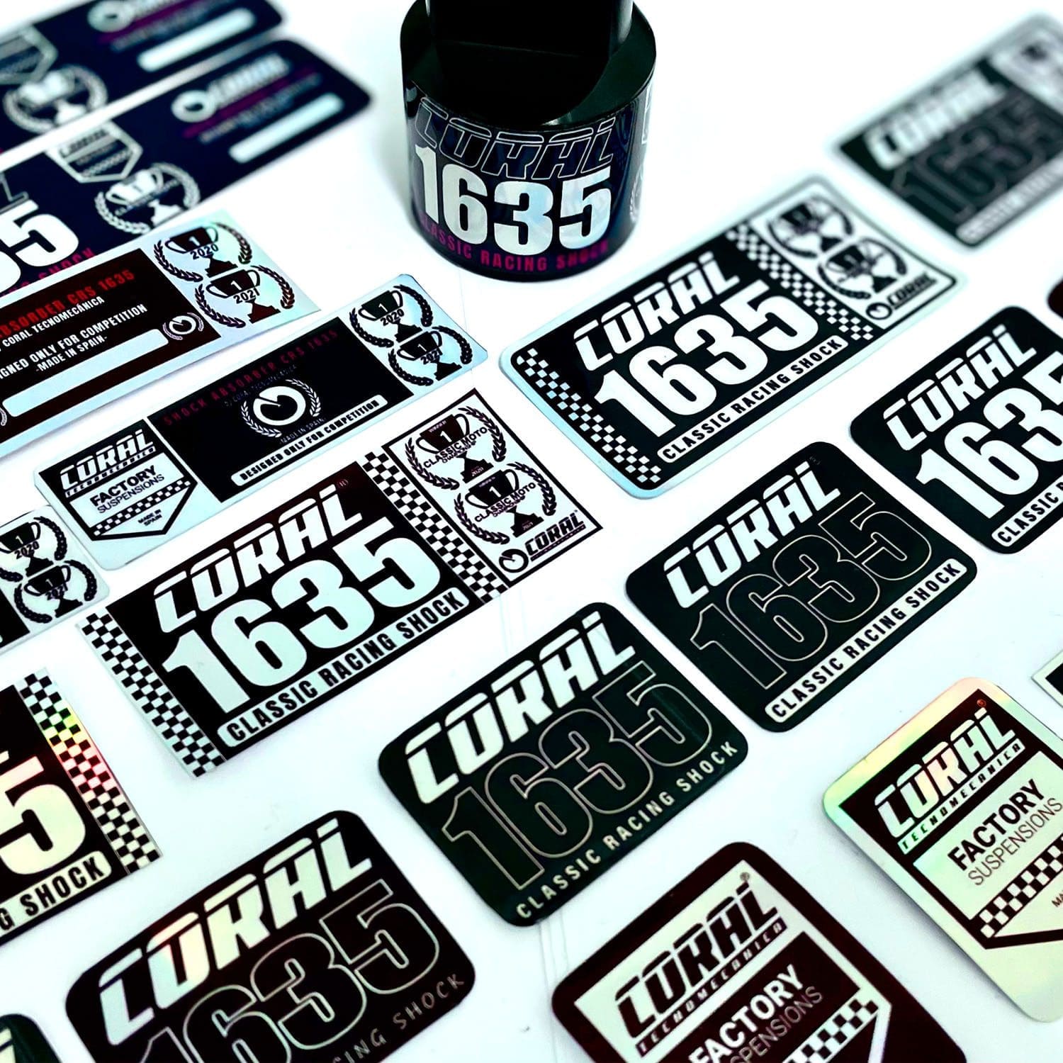 Estas pegatinas se imprimen sobre un vinilo con efecto holográfico. Los colores transparentan con el fondo y se ven afectados por el color del vinilo, consiguiendo así ese toque especial tan llamativo.