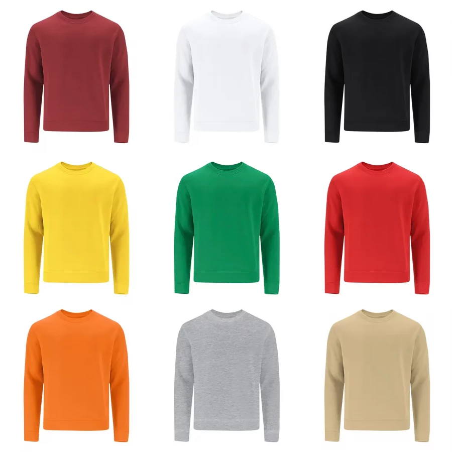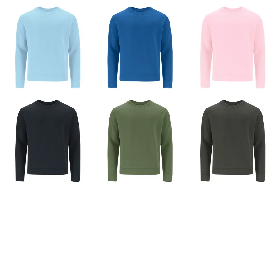 Sudadera unisex en algodón y poliéster en suave felpa perchada 280 g/m2. Con cuello redondo, puños y cinturilla en punto canalé 1×1 con elastano, que aporta mayor ajuste y confort. Cubrecosturas reforzado en el interior del cuello.